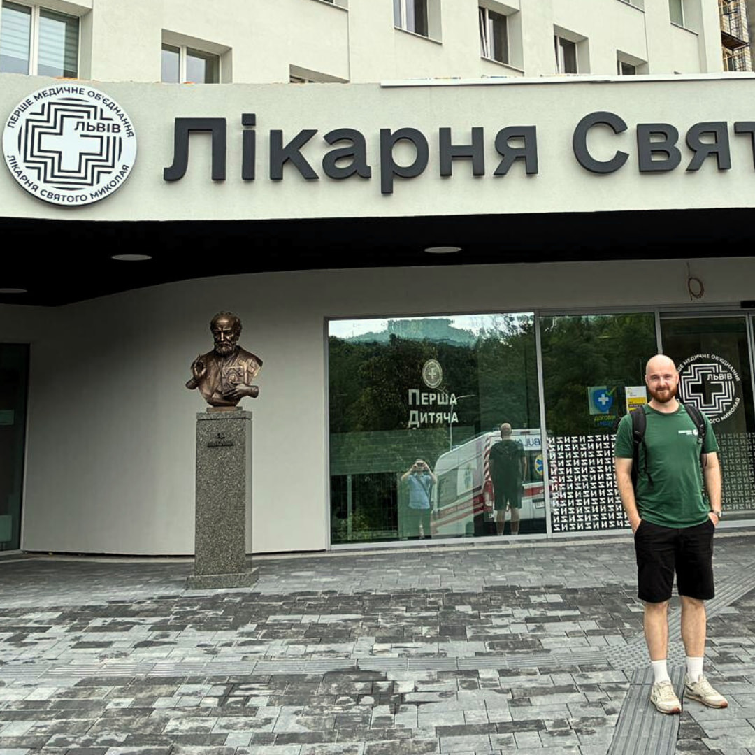Die Entscheidung zur Reise in die Ukraine wurde entsprechend sorgfältig abgewogen. Ziel war es, gemeinsam mit den medizinischen und pharmazeutischen Fachkräften der Klinik die bereits getätigten Kooperationen zu evaluieren und einen genauen Einblick in die Bedarfe und die Lage vor Ort zu gewinnen. „Nach über drei Jahren Zusammenarbeit auf Distanz war es für mich etwas ganz Besonderes, die Menschen, mit denen wir seit 2022 so eng kooperieren, nun endlich auch persönlich kennenzulernen“, berichtet Max Haselbach. „Es war sehr bewegend mit eigenen Augen zu sehen, wie unsere Unterstützung konkret wirkt: Arzneimittel und Hilfsgüter, die wir regelmäßig organisieren und versenden, leisten nicht nur in Lviv Tag für Tag einen wichtigen Beitrag zur Aufrechterhaltung der Gesundheitsversorgung der Menschen in der Ukraine.“